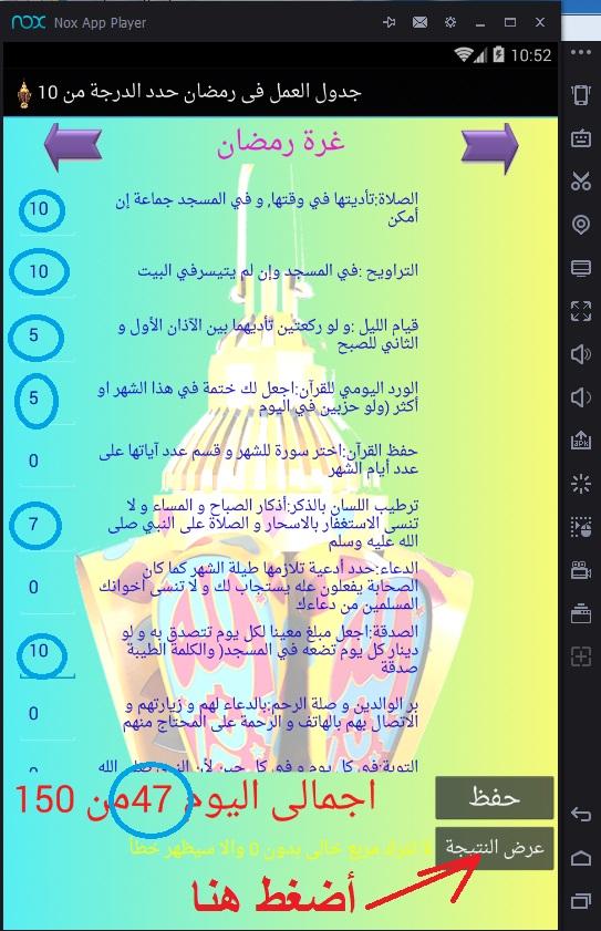 برنامج سهل الاستخدام يعرض النشاط اليومى من خلال رسم بيانى لسهولة المقارنة خلال العشر الأول والعشر الوسط والعشر الاواخر من الشهر الكريم